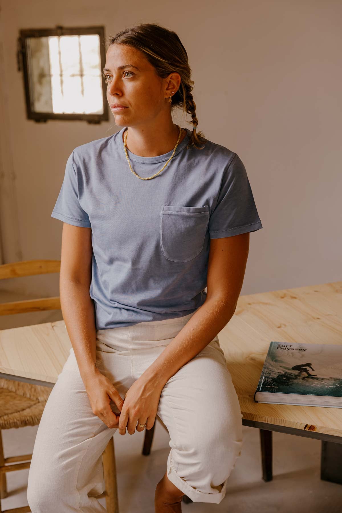 POCKET – Camiseta algodón orgánico Pima – Azul delfín