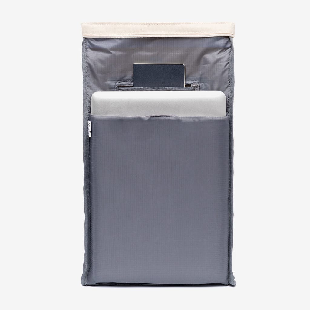 Mini has never been so big. The compact version of our Roll model has the space to carry all your daily essentials. It features a padded compartment for laptops or electronic devices up to 13.6″, a zipped inside pocket, and mesh organisers for small objects. Its roll-up system with strong magnets, zip and metal hook makes it one of the safest backpack options for getting around town.