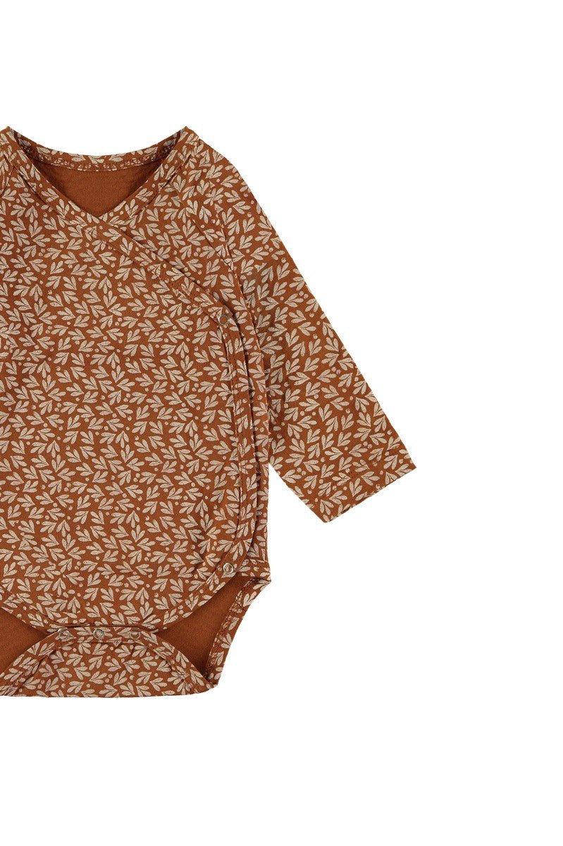 Long sleeves baby jumpsuit in terracotta with nickel-free clasps. Its olive leaves print is inspired by the most essential, our environment. Our home. HOME gives it a very special touch….