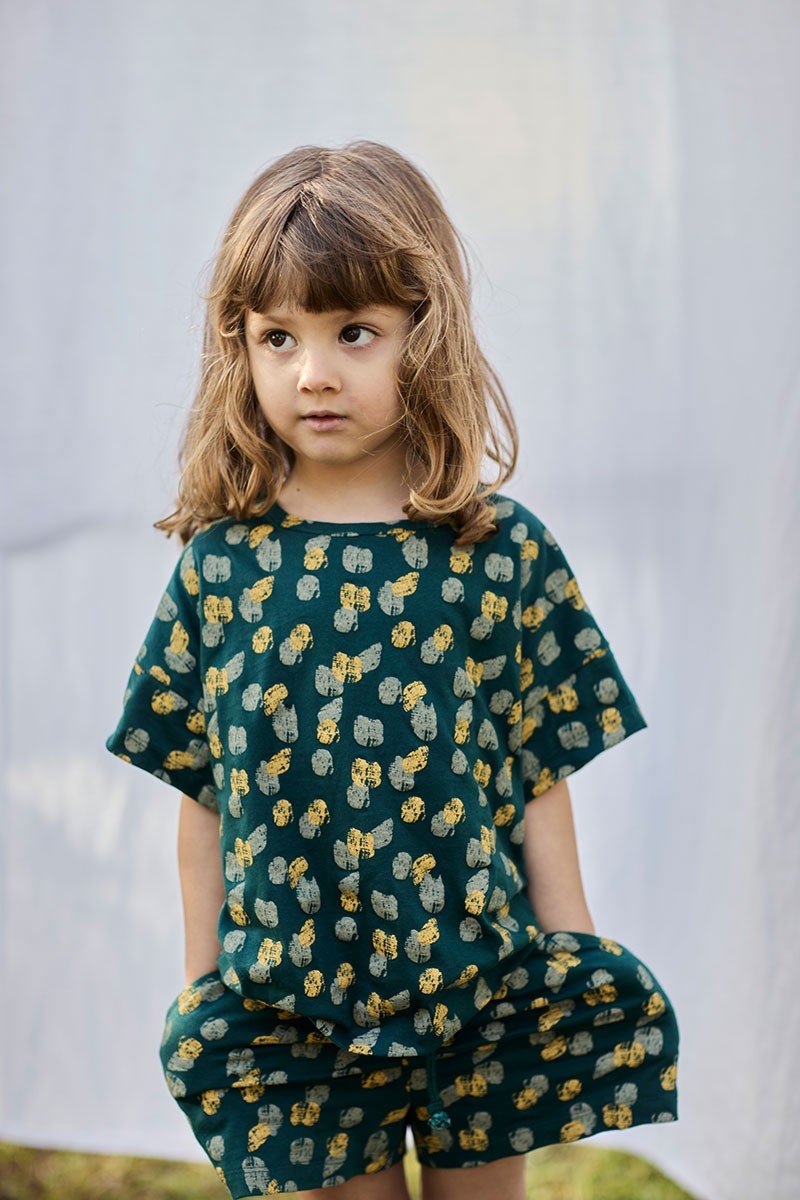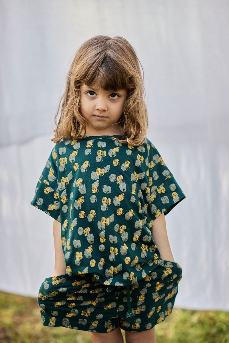 Knitted shorts with side pockets, elastic waistband with a drawstring for a tighter fit. Its footprints print in green-blue from the Kudumbam collection, which means family in Tamil, inspired by the core values of Tiralahilacha, give it that unique and special touch. It feels very soft and pleasant on the skin. In addition, it is made free of toxins and is hypoallergenic for your baby’s delicate skin.
