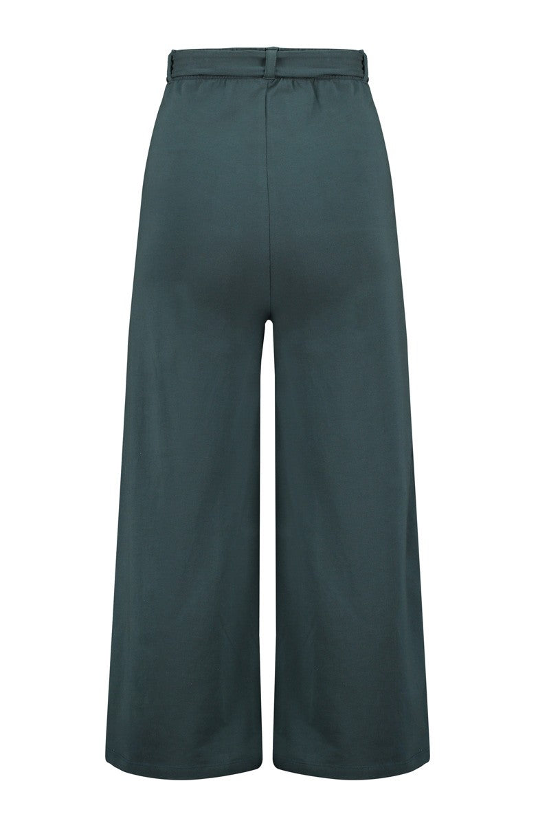 Sibila is a high-waisted wide pant with a belt. Made of knitted fabric. It is very practical, comfortable and elegant. A timeless blue basic, very versatile and easy to combine. Our home, HOME, gives that special touch to the garment.