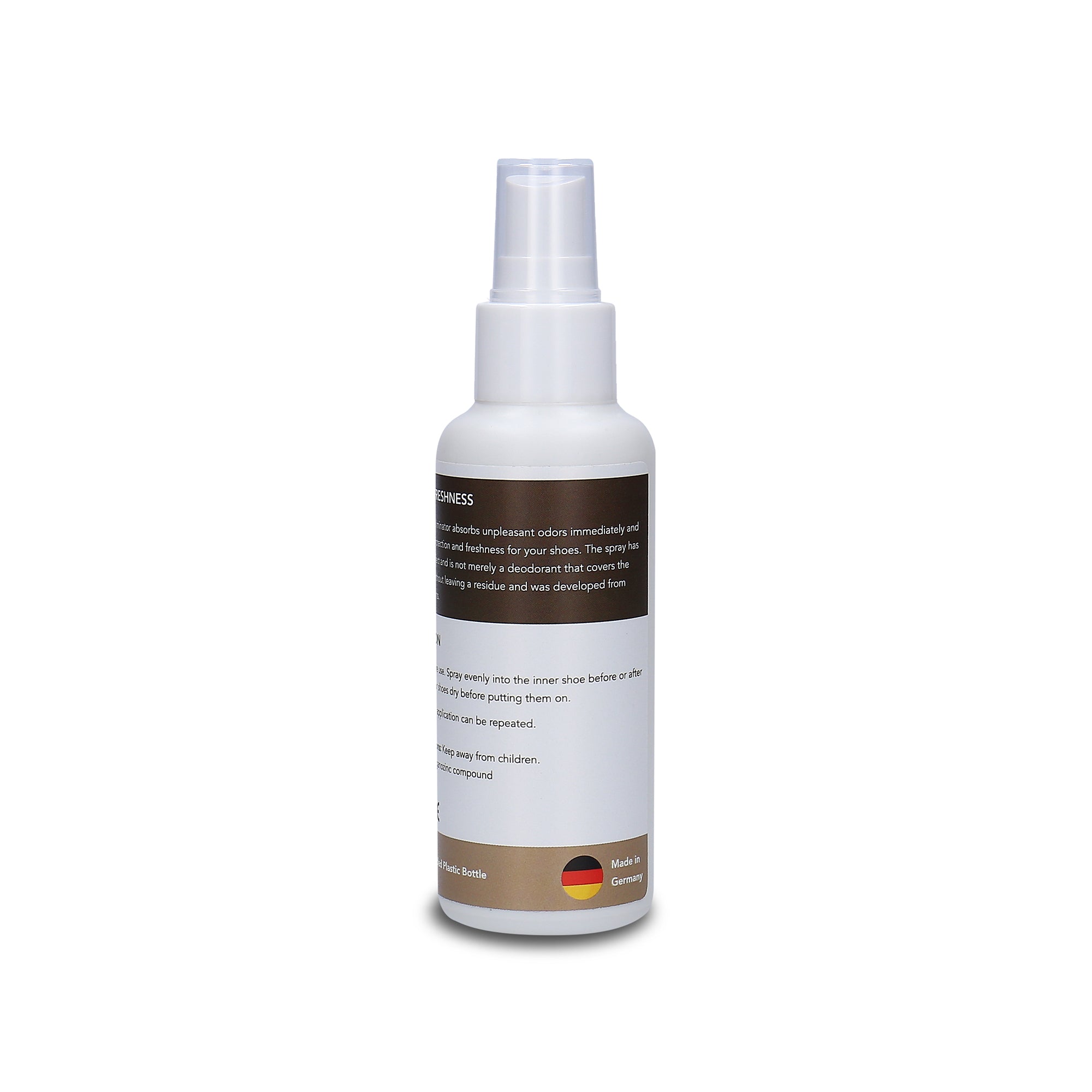 Discover our Vegan Shoe Odor Eliminator Spray—an eco-friendly solution for shoe care. Swiftly absorbing unpleasant odors while ensuring long-lasting freshness and odor protection for your shoes. Unlike typical deodorants, it neutralizes odors without leaving residue, formulated from natural ingredients. Shake well before use, spray evenly into the shoe’s interior before or after wear, allowing them to dry completely. For enhanced freshness, repeat application as needed. Crafted in Germany using environmentally friendly materials in fair work environments and packaged in recycled plastic bottles, this odor eliminator spray offers a sustainable way to maintain shoe hygiene and comfort.