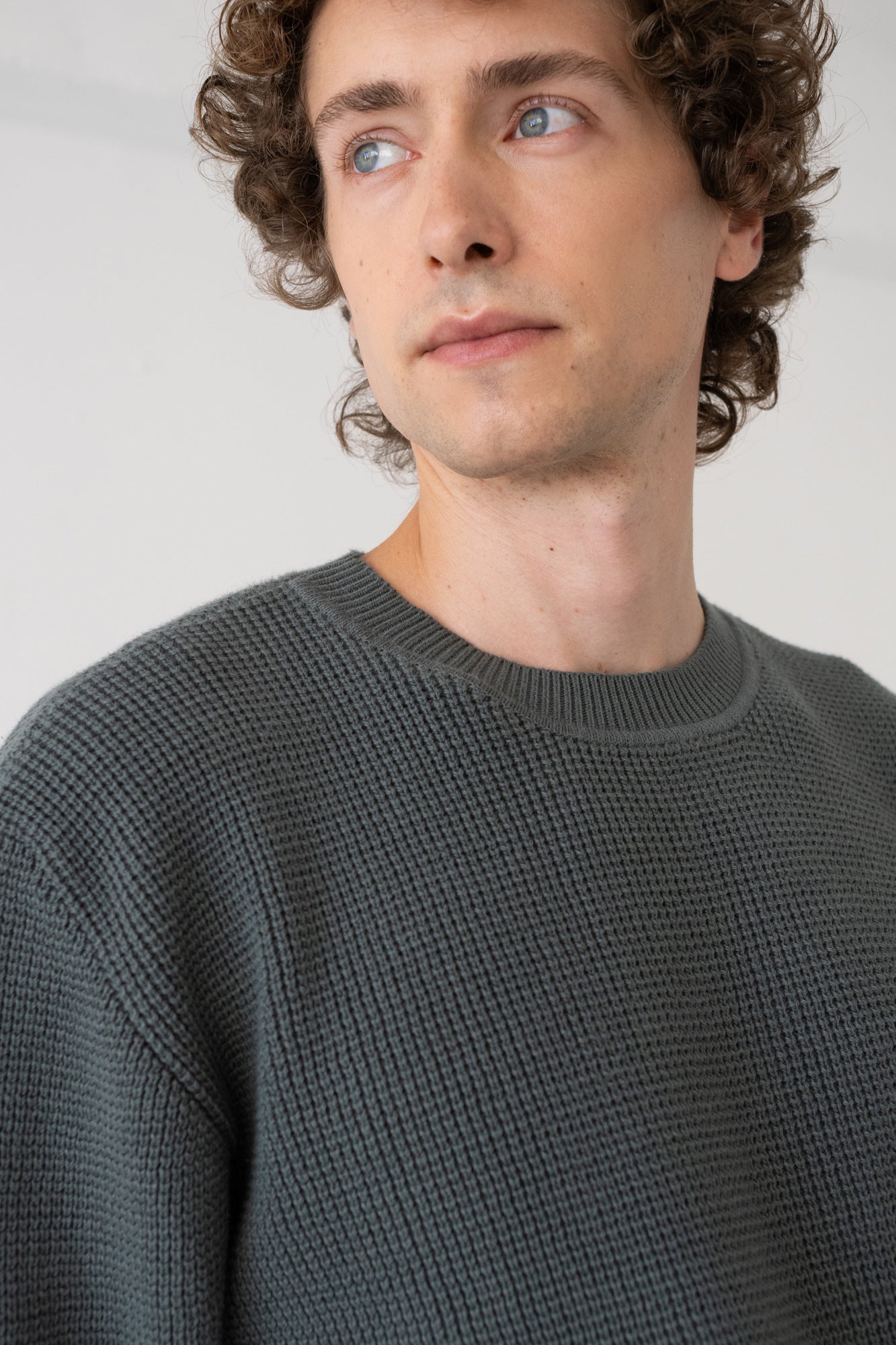 Tam is a men’s sweater with a perfect fit and length. A quality basic that will last over time and can be paired with countless garments. Crafted from the finest organic cotton sourced from Italy, in a family-run factory in Spain. Very soft and pleasant to the touch, the ideal garment to keep you cosy and warm all year round! The hydrangea blue colour exudes calm and serenity, with a romantic ethereal twist. Combined with lighter tones, it offers a relaxing yet elegant look.