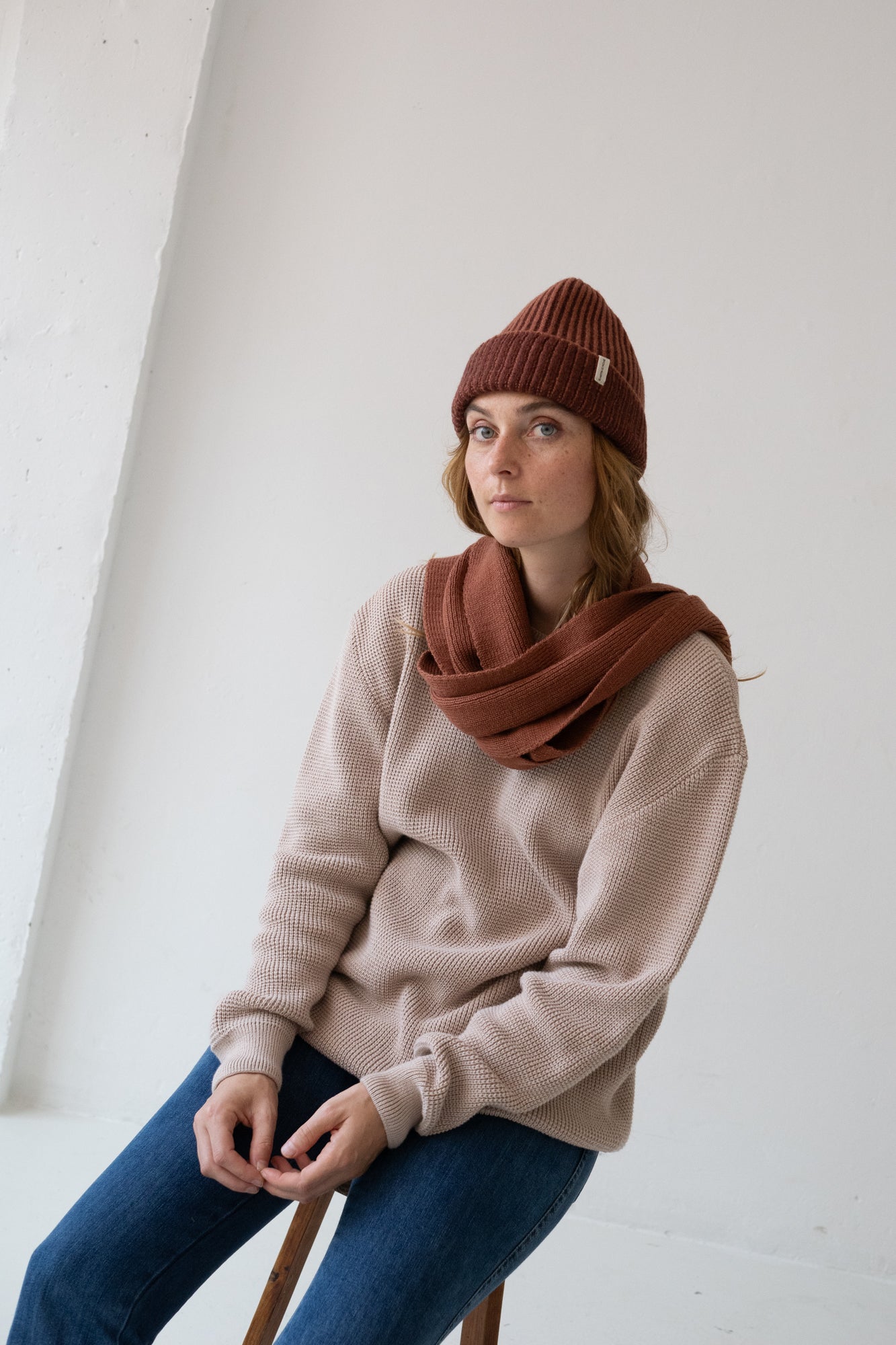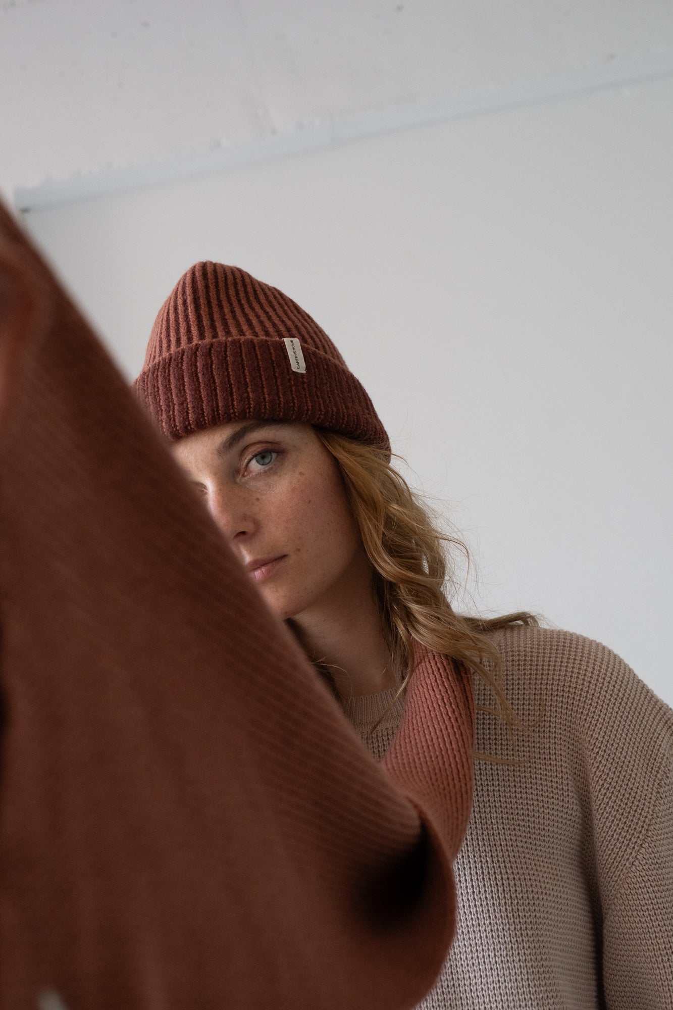 Tao is the perfect beanie to keep you warm all winter long. Ultra comfortable, thick and soft to the touch. Made of high quality Italian merino wool in a family-run factory in Spain. A lifetime accessory that you can combine with our Tayo scarves.