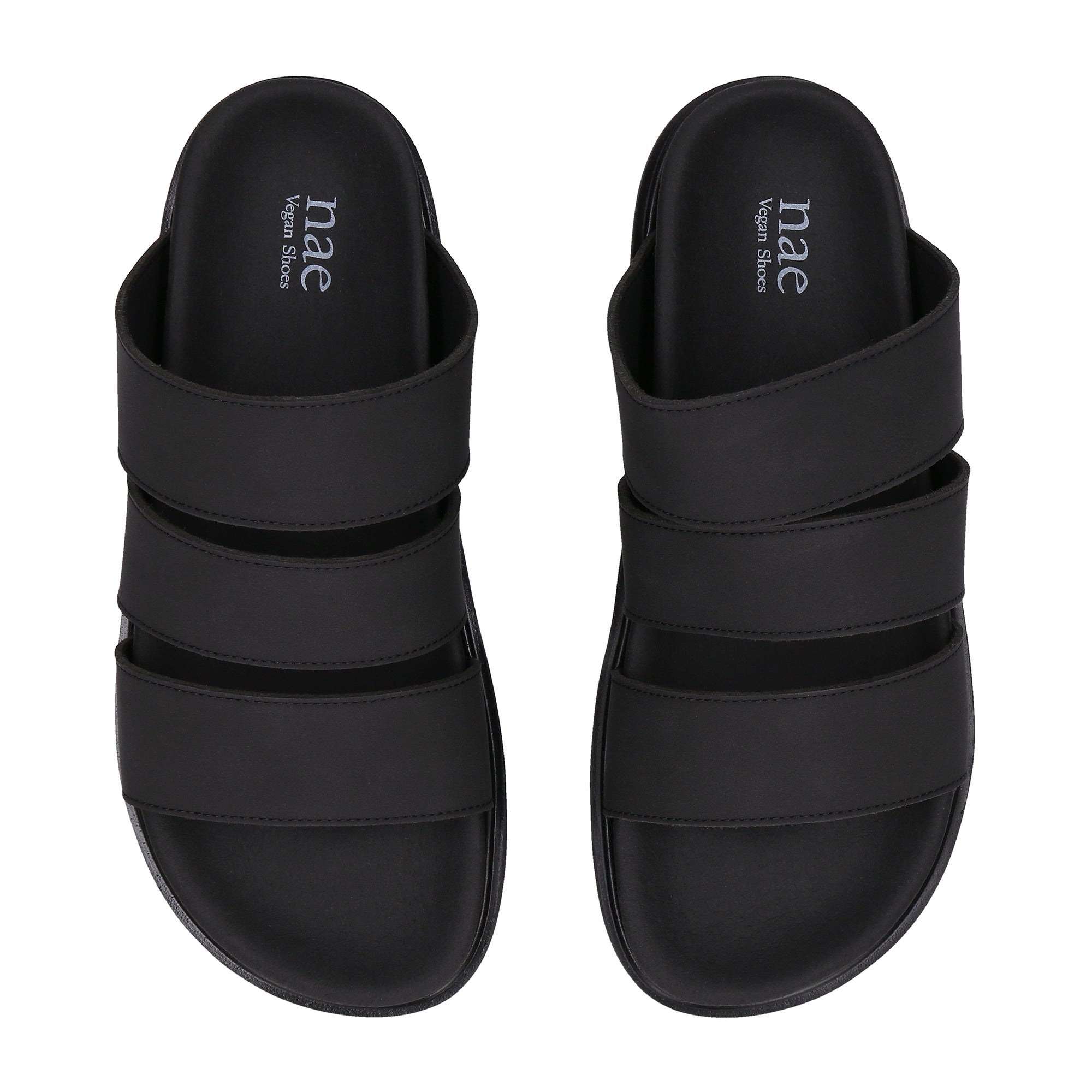 Tonga Black vegan sandals are handcrafted in Portugal with eco-friendly microfibers. Featuring a 2 cm platform, a sleek triple-strap design (each strap 3.5 cm wide), and a 1 cm sole, these slip-ons combine bold aesthetics with comfort. Perfect for a modern, sustainable wardrobe, they offer versatility and a minimalist edge.