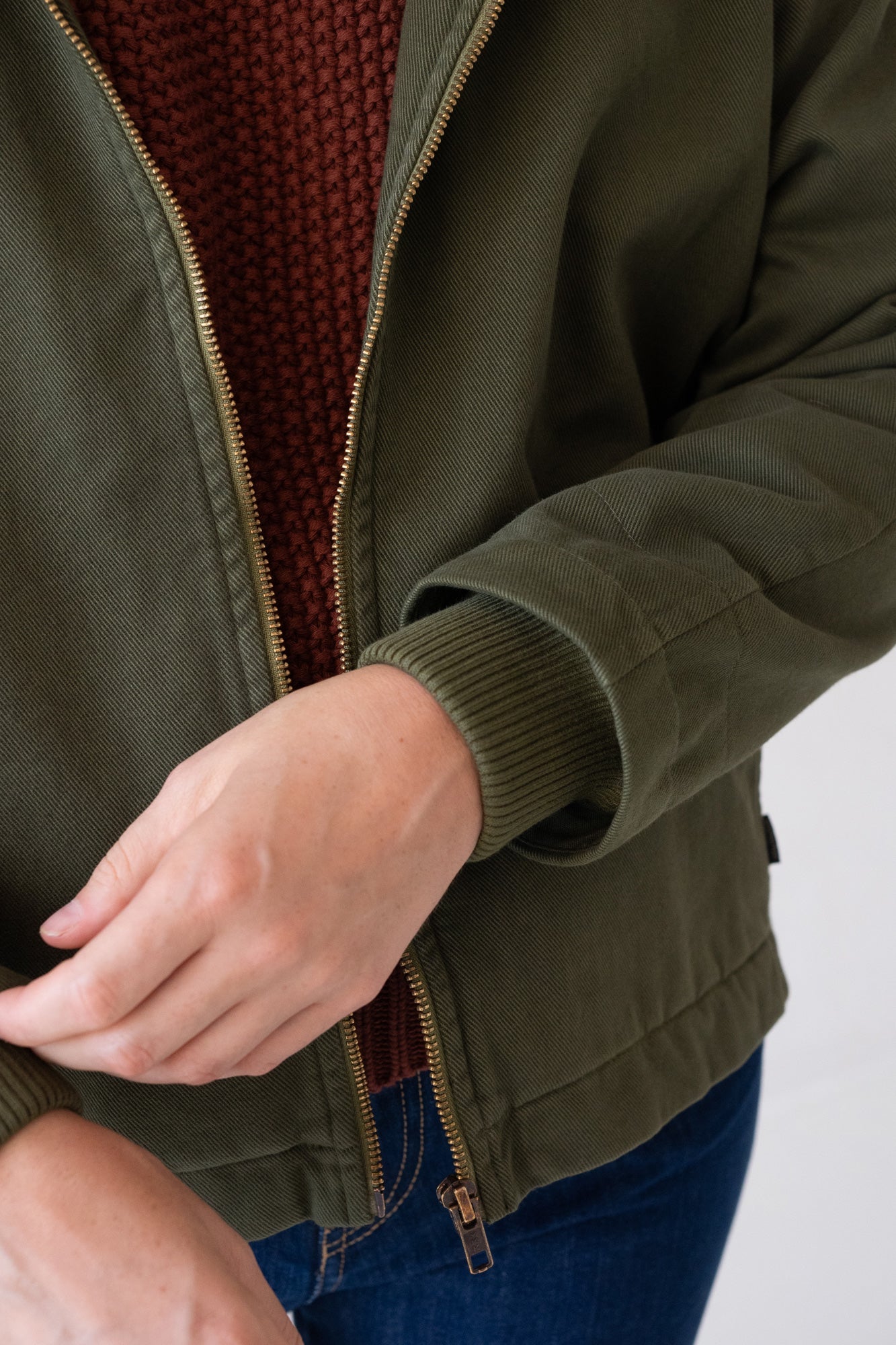 We are thrilled to introduce this new women jacket, 100% sustainable! A cozy, must-have garment for those in-between seasons, with an outer fabric that’s sure to captivate and leave a lasting impression! It’s soft, warm and lined with 100% organic cotton. Featuring outside pockets and one inside, and a nickel-free metallic YKK zipper. Crafted with care in our family-run factory in Tàrrega. This piece in olive green embodies a harmony and elegance conveying a strong connection to nature.