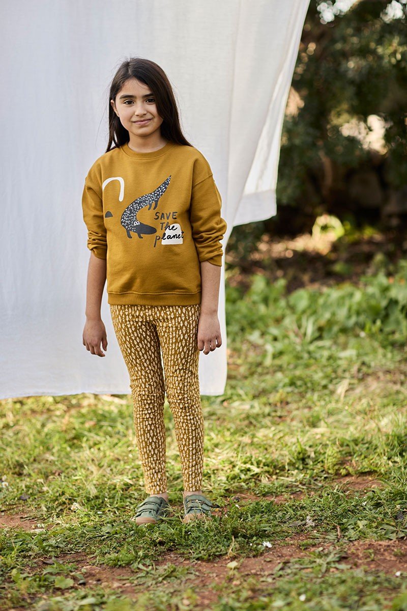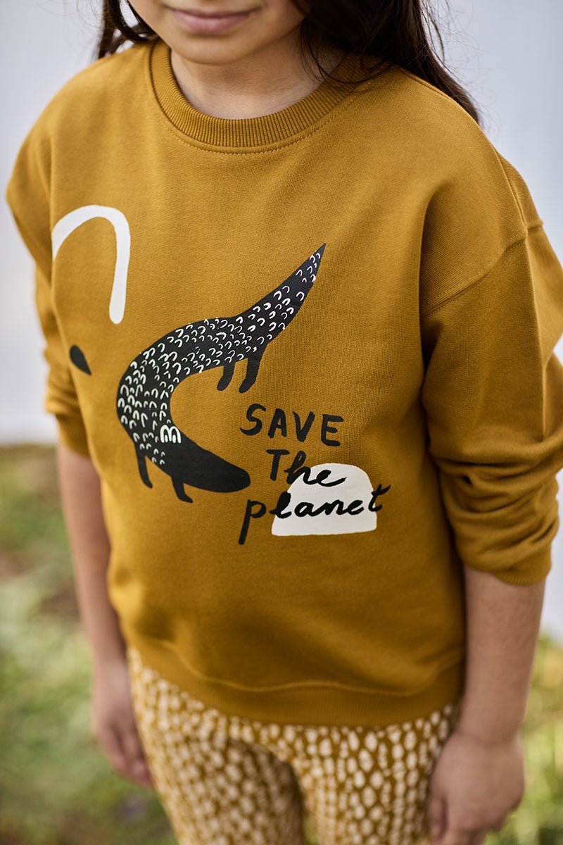 Unisex long-sleeved organic cotton terry sweatshirt. This model has an oversized silhouette so your little one can wear it over time. Perfect for the in-between season. This red sweatshirt has a beautiful and vindicative illustration of a hippopotamus. In collaboration with our beloved illustrator Marta Abad Blay. Very soft and pleasant to the touch. It is toxic free and hypoallergenic for the soft and delicate skin of your little ones.