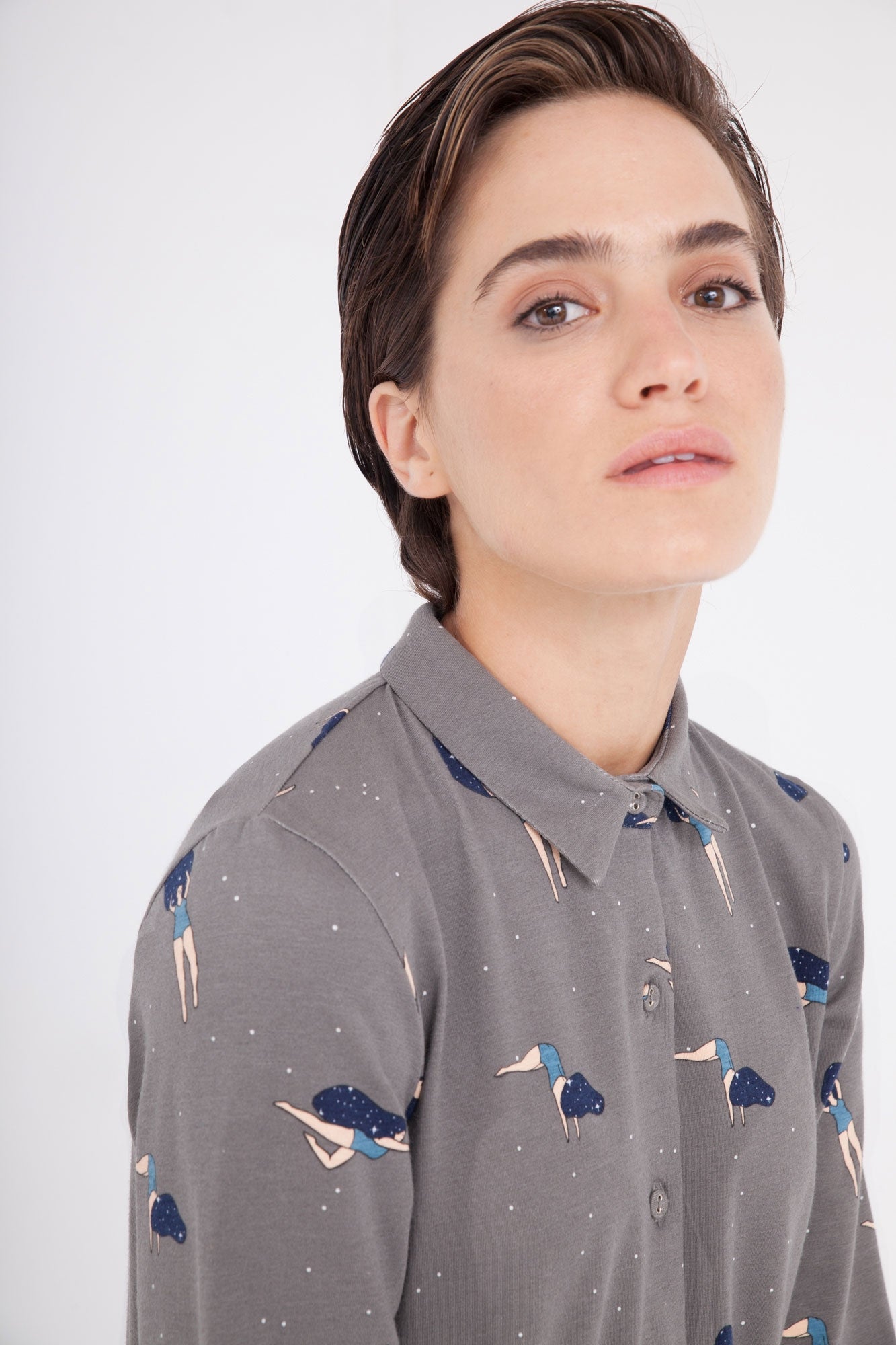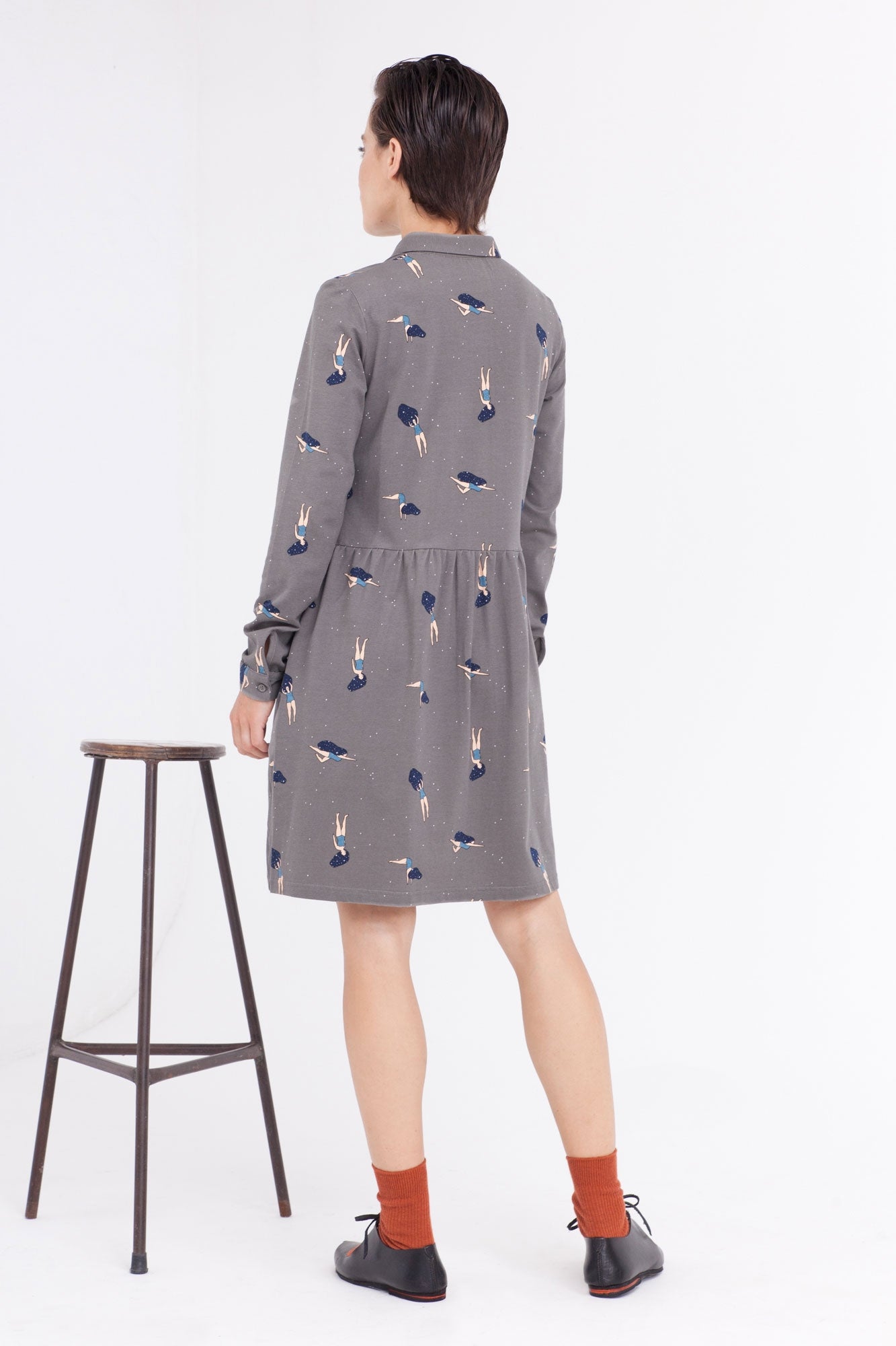 Nuestro vestido camisero color gris con estampado bailando en el cosmos es un clásico en nuestras coleciones, esta vez le hemos añadido unos bolsillos laterales para darle más versatilidad. Es un vestido que se adapta y sienta maravillosamente bien a todo tipo de cuerpos. Tiene botones funcionales que van ideal si estás dando el pecho. Ropa de mujer ecológica confeccionada en algodón orgánico GOTS de comercio justo.
