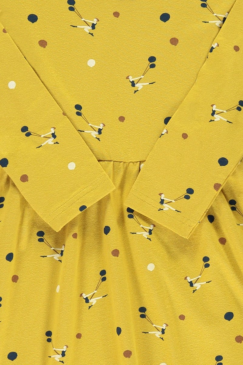 Este vestido manga larga es ya un «Classic» en nuestras colecciones. Es una prenda holgada y muy cómoda con bolsillos laterales para que guarden sus tesoros. Además, el precioso estampado de trapecistas mostaza inspirado en Circus, hace que sea una prenda especial, única y muy original.