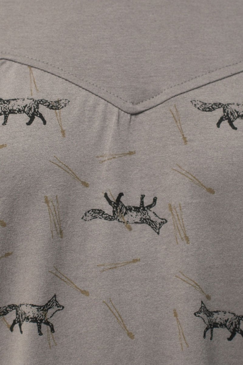 Vestido evasé con canesú en gris con estampado zorros. Ropa de mujer ecológica confeccionada en algodón orgánico GOTS de comercio justo.